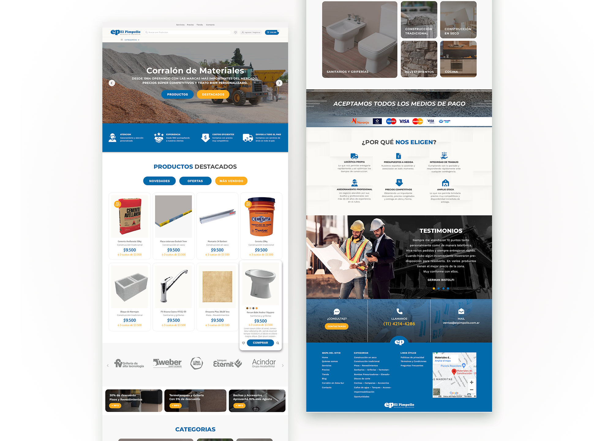 El Pimpollo, un reconocido corralón de materiales, buscaba expandir su presencia digital incorporando un ecommerce a su sitio web. Para lograrlo, se desarrolló una nueva plataforma desde cero, abarcando tanto el diseño como el maquetado, siempre respetando la identidad visual de la marca.