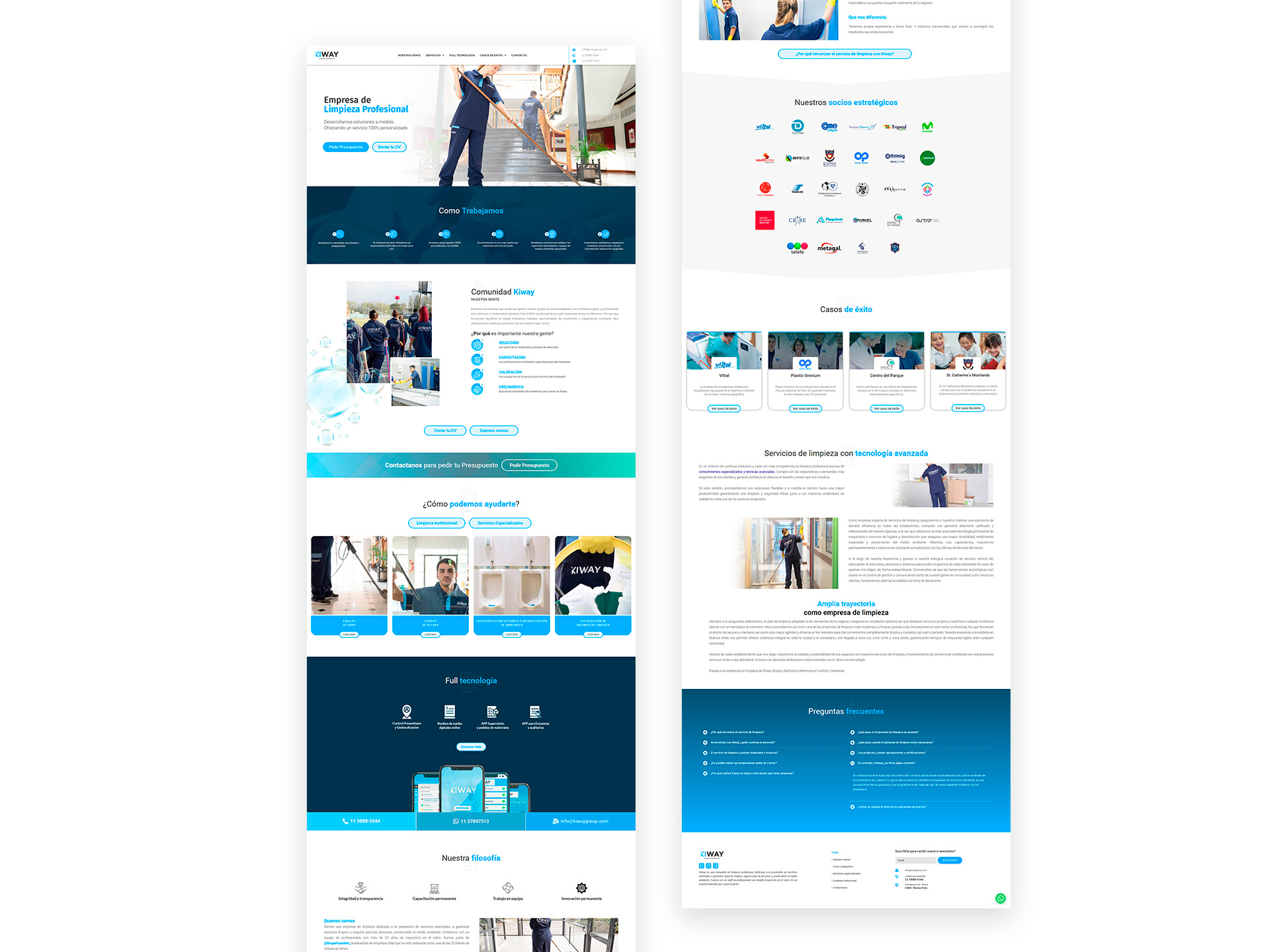 Kiway Group, empresa especializada en servicios de limpieza profesional, requería una presencia digital clara y alineada con su posicionamiento, que permitiera comunicar sus servicios de forma ordenada y facilitar la generación de consultas. El proyecto incluyó el desarrollo de un sitio web corporativo, enfocado en estructurar la información de manera clara y profesional, mejorando la navegación y la comprensión de los servicios ofrecidos. Se trabajó sobre una presentación más organizada, adaptada a distintos dispositivos y orientada a transmitir confianza. Como complemento, se desarrolló una landing page específica destinada a campañas digitales, diseñada para focalizar la comunicación en servicios concretos y optimizar la captación de oportunidades comerciales. El resultado es una presencia digital coherente, que integra comunicación institucional y herramientas de captación, alineadas con las necesidades del negocio.