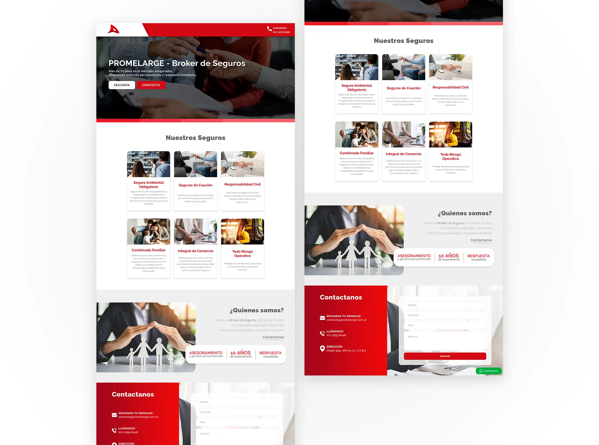 Promelarge, broker de seguros con más de 10 años de trayectoria en el mercado, requería una landing page que permitiera comunicar su propuesta de servicios de forma clara, ordenada y confiable, facilitando la generación de consultas.
