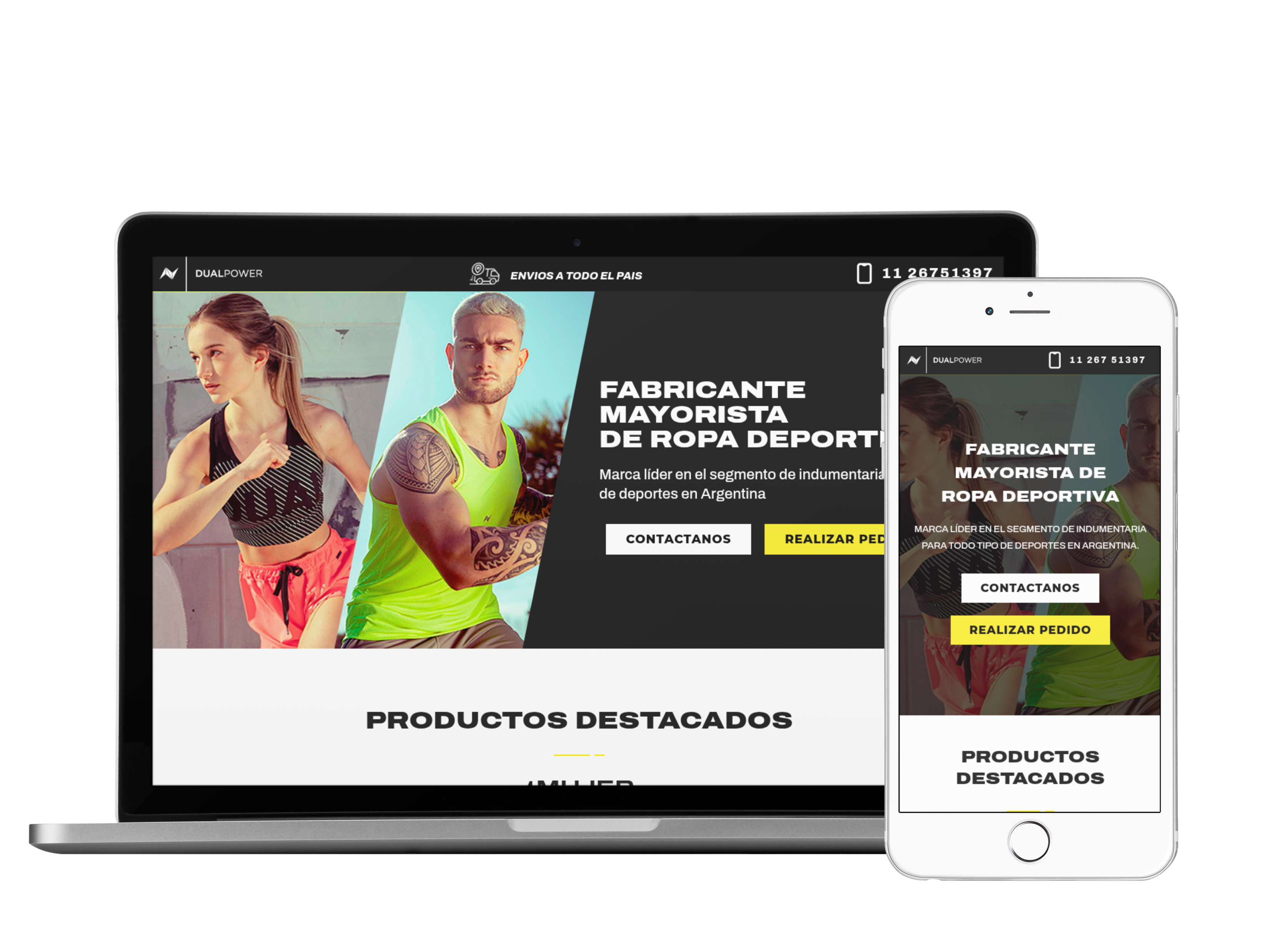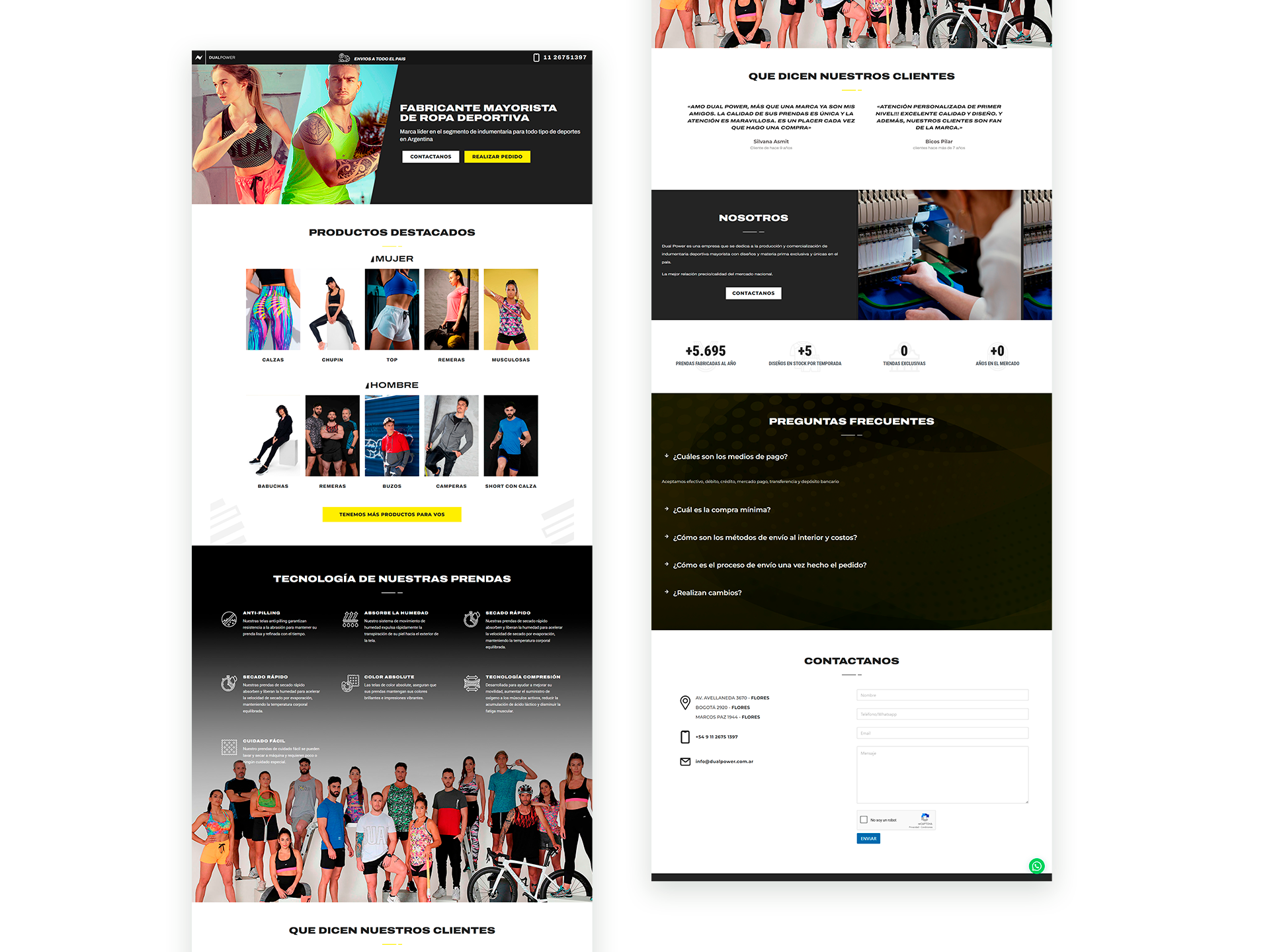 Dualpower, empresa dedicada a la fabricación de indumentaria deportiva, requería una landing page alineada con su identidad visual, que permitiera presentar sus productos de forma clara y facilitar el contacto con potenciales clientes.